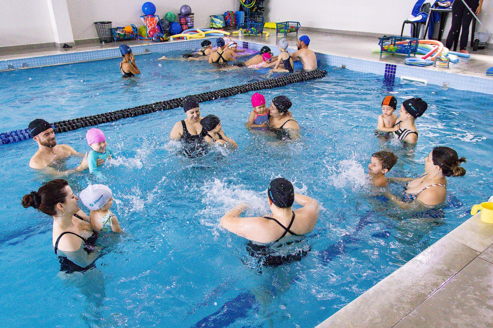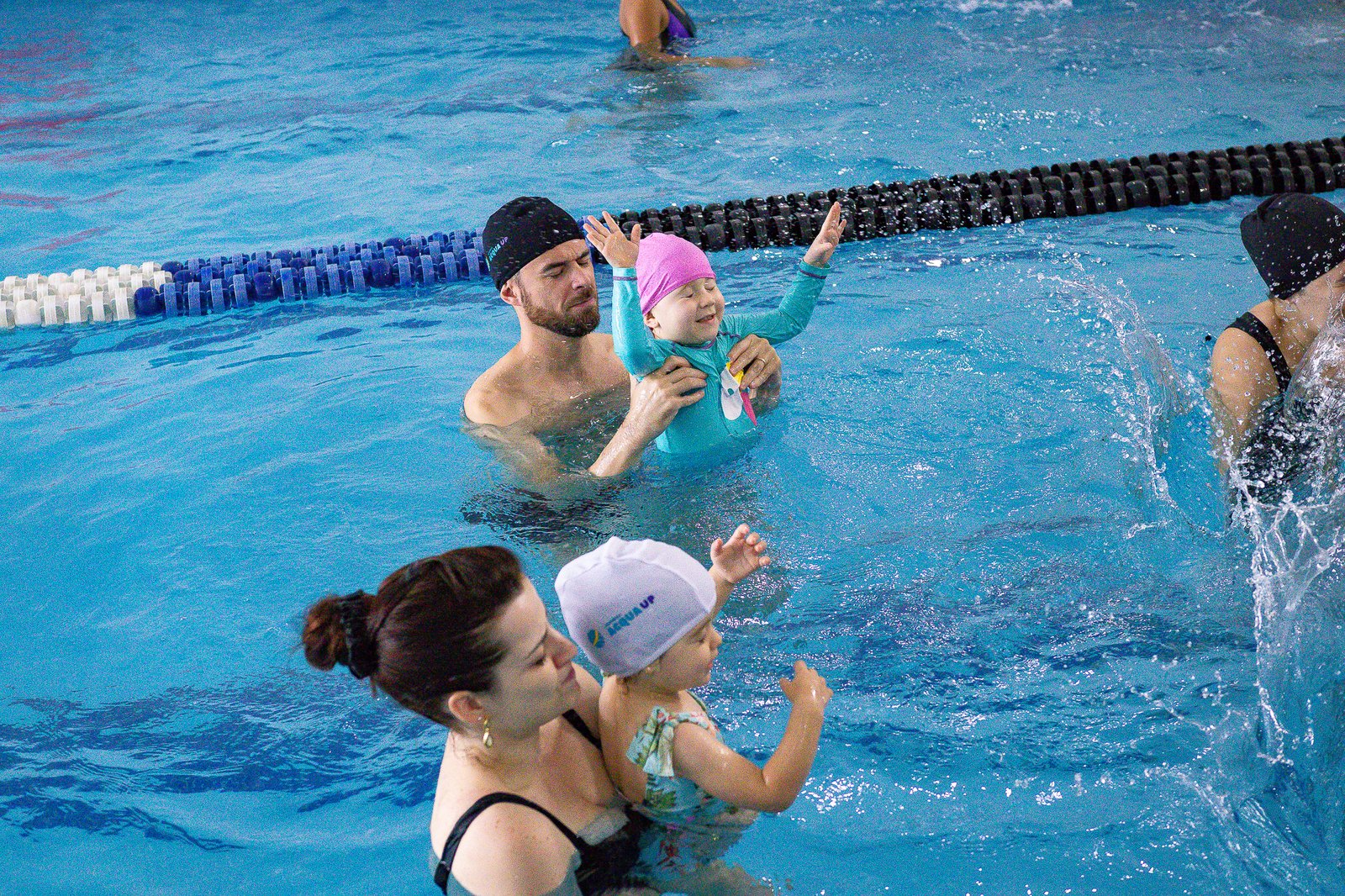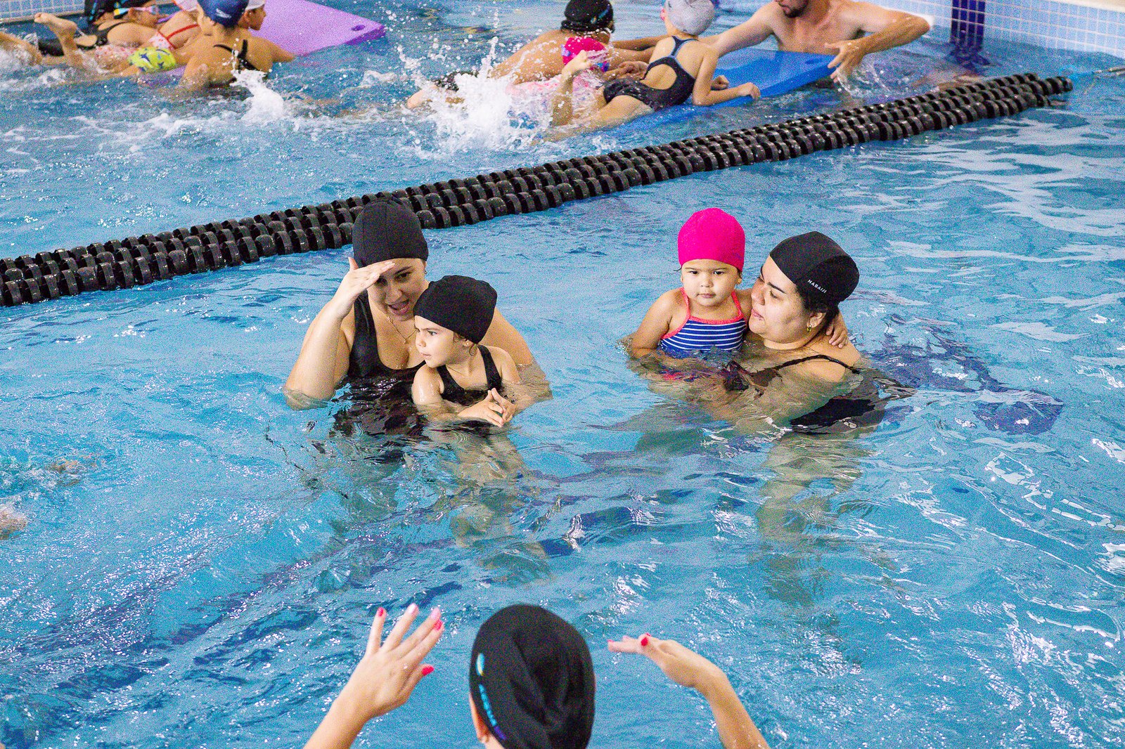 Aulas de 40 minutos, com a participação dos pais ou responsáveis na água.